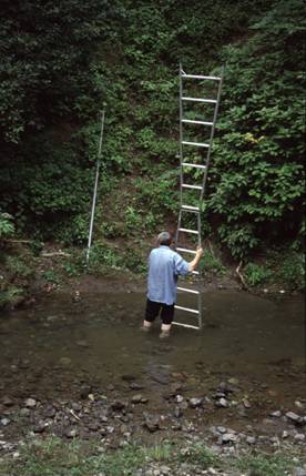 Die Arbeit wurde so montiert, dass die morphologischen Eigenheiten der japanischen Landschaft im gebirgigen Landesinneren aufgenommen wurden. Die Täler des östlichen Japans haben sehr steile Hänge, - durch die Befestigung der Rohre entlang des Hanges wurde diese Richtung akzentuiert.
